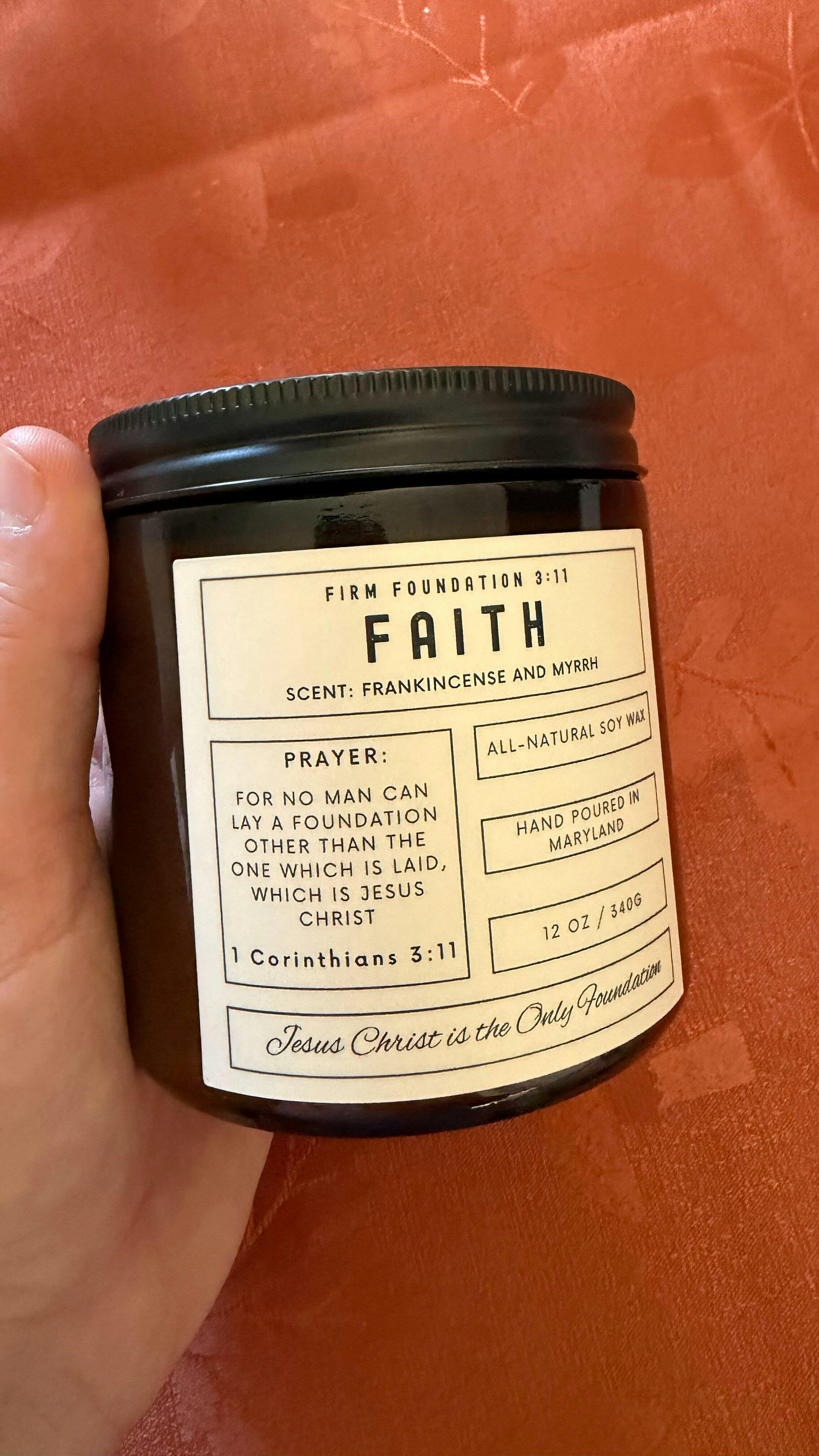 Faith was the first candle I purchased and I absolutely LOVE IT! It fills the room with a unique scent that is not over powering. I will definitely order this candle again when this one is done!